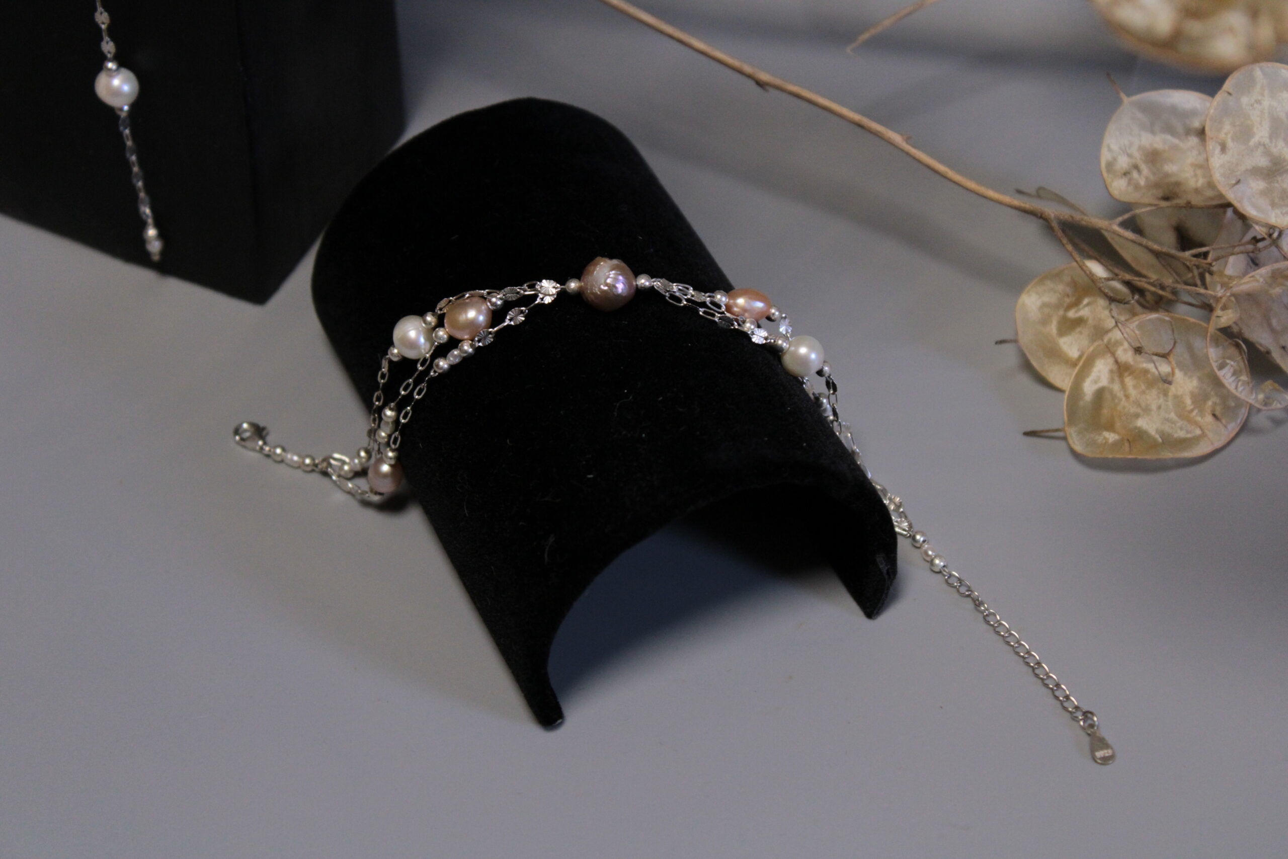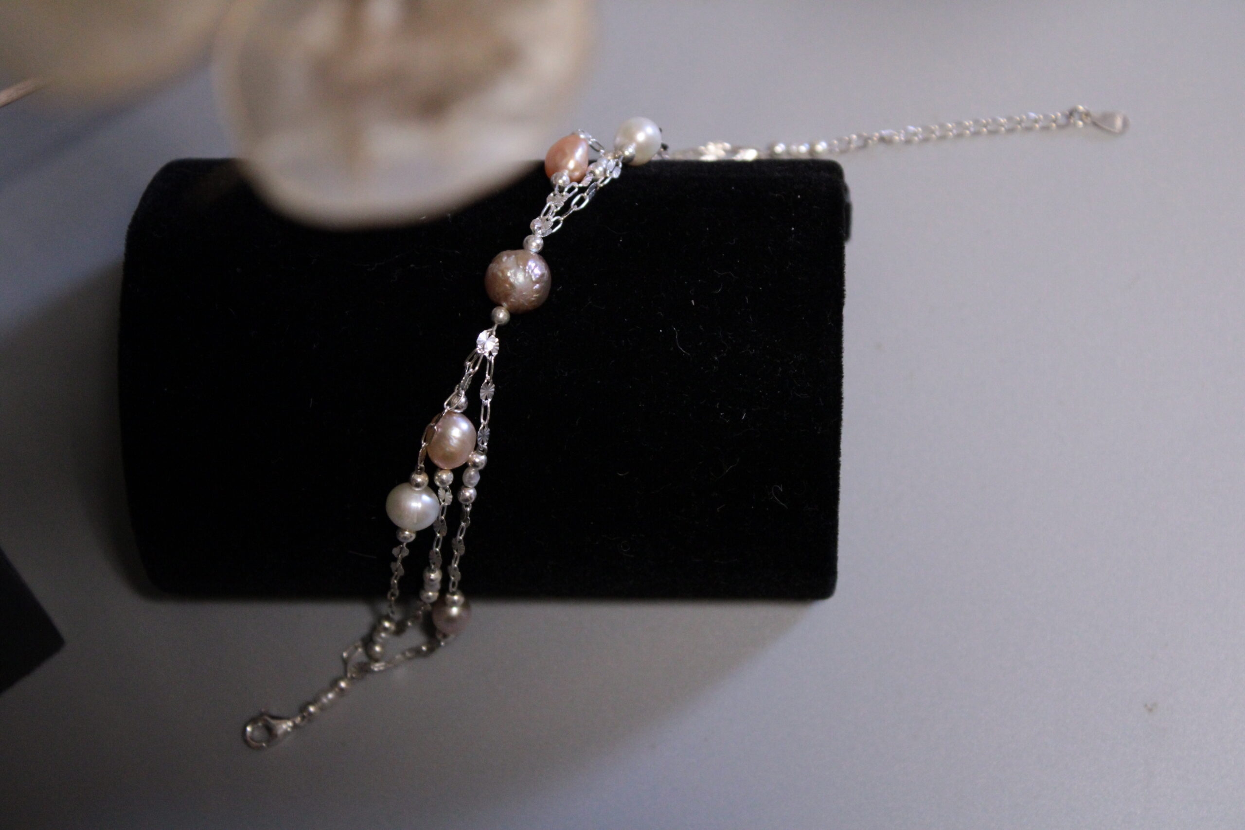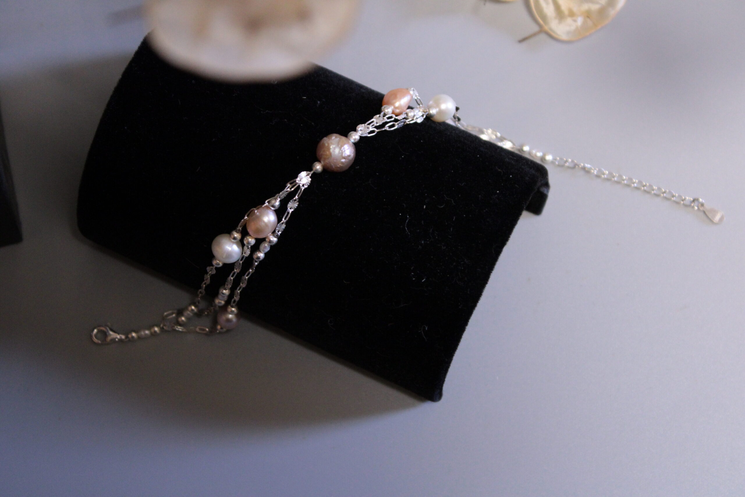 Au centre de cette création se trouve une perle keshi, rare et précieuse, dont la beauté irrégulière reflète la liberté de la mer. Chaque keshi étant unique, aucun bracelet ne se ressemble, faisant de votre bijou une pièce véritablement exclusive.